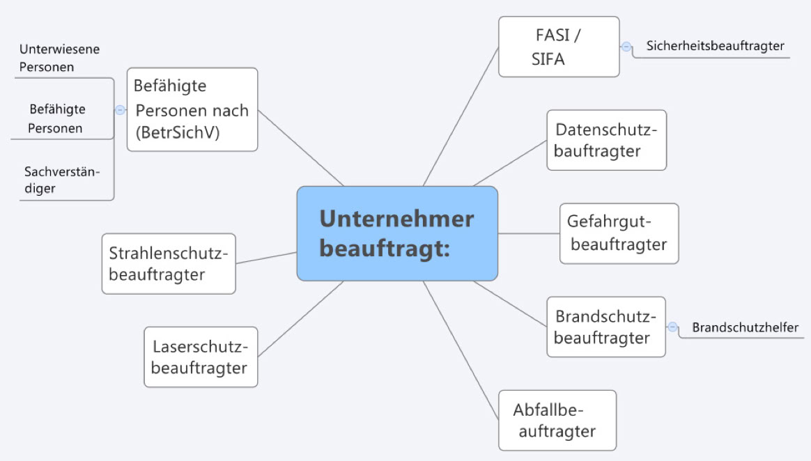 Experten oder beratende Fachleute des Unternehmers findet man in den verschiedensten Gesetzen und Vorschriften. In der nachfolgenden Tabelle erhalten Sie einen Überblick über die verschiedenen Funktionen sowie Hinweise, aufgrund welcher Vorschriften diese Funktionen im Betrieb benötigt werden.