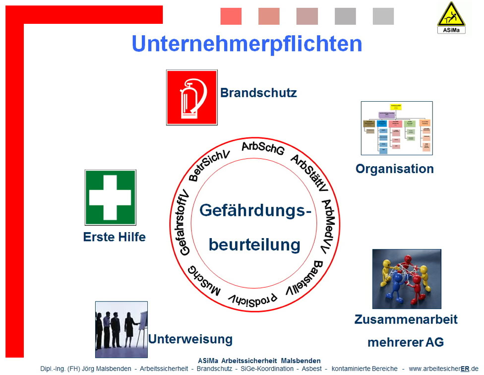 ASiMa Arbeitssicherheit und Brandschutz Dipl.-Ing. (FH) Jörg Malsbenden Arbeits- und Gesundheitsschutz Brandschutz Ergonomie Unterweisung